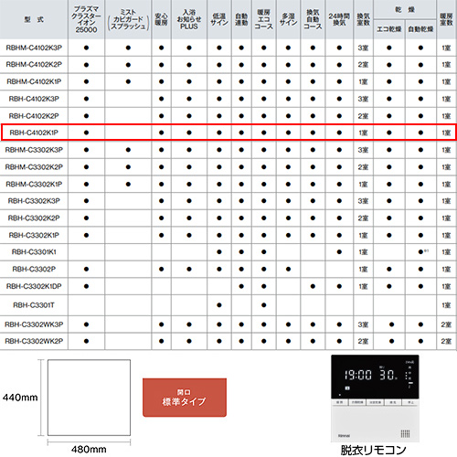 浴室暖房乾燥機[温水式][天井埋込型][1室暖房][1室換気][開口標準タイプ][衣類乾燥][1.5坪以下]
