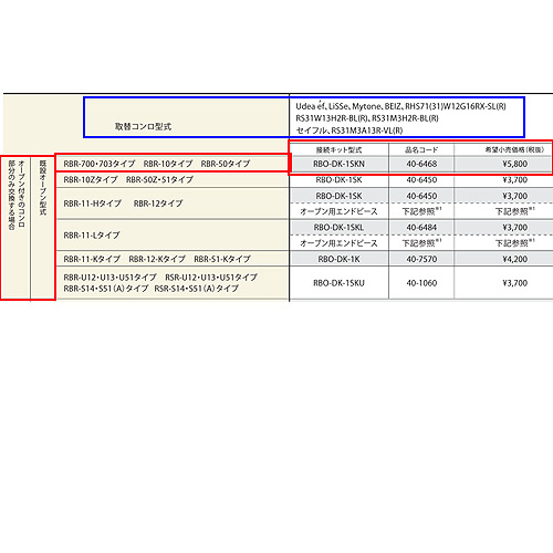 ・既設オーブン型式:RBR-700・703タイプ、RBR-10タイプ、RBR-50タイプ用