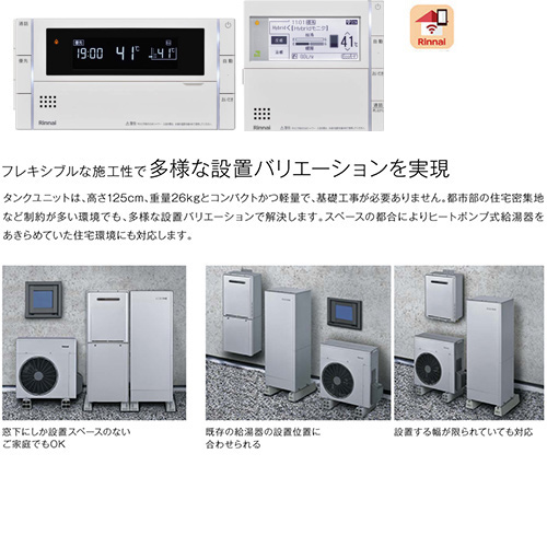 ※分離タイプはタンクと熱源機間は片道2m以内で配管工事をして下さい。(配管は現場手配)