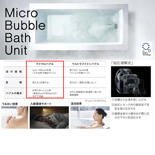 マイクロバブルバスユニット内蔵で微細な泡で暮らしを豊かにします。