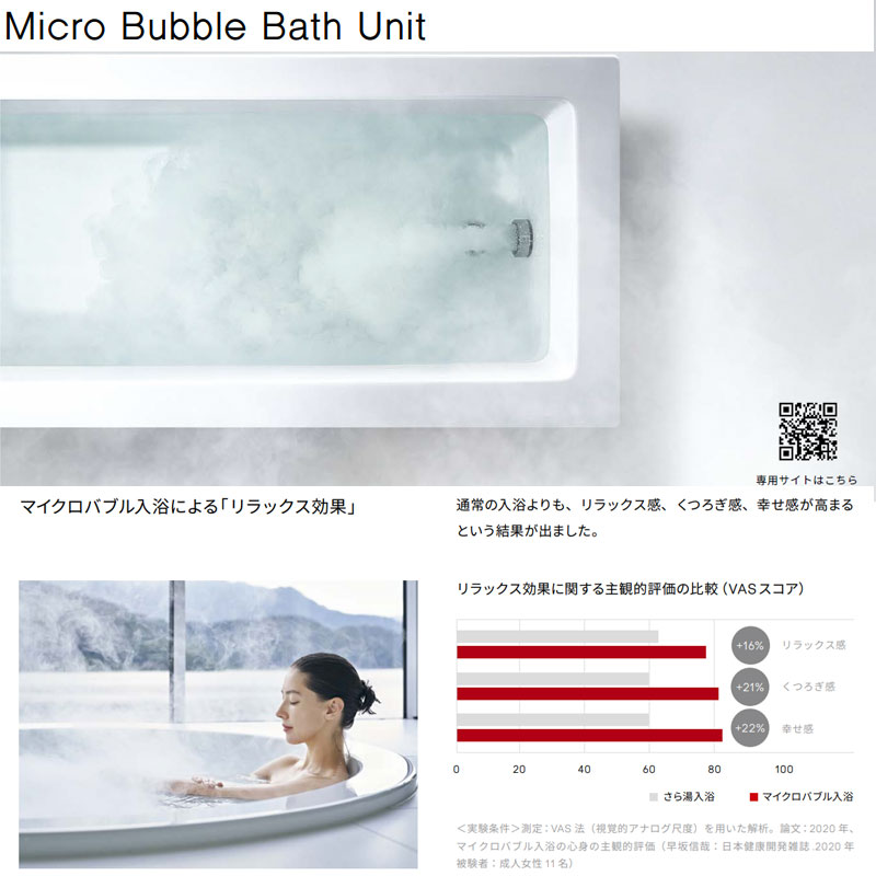 マイクロバブルバスユニット内蔵で微細な泡で暮らしを豊かにします。