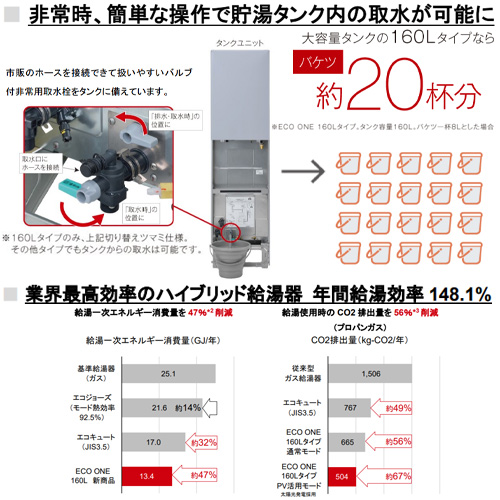 ハイブリッド給湯・暖房システム エコワンセット[ダブル][160L][一体][能力11.6kW][フルオート][24号][シャイニーシルバー][一般地]