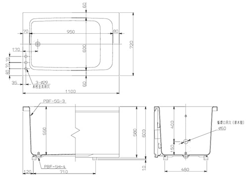 浴槽 ホールインワン専用[据置浴槽][和洋折衷タイプ][1100サイズ][1方全エプロン][壁貫通タイプ][FRP普通タイプ][排水左仕様]