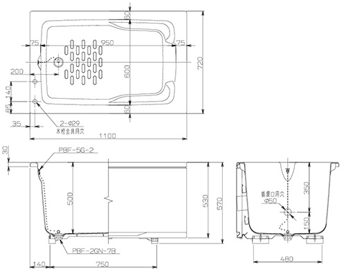 ・循環口用穴:排水側φ50mm