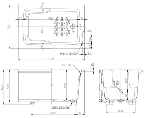 ・循環口用穴:排水側φ50mm