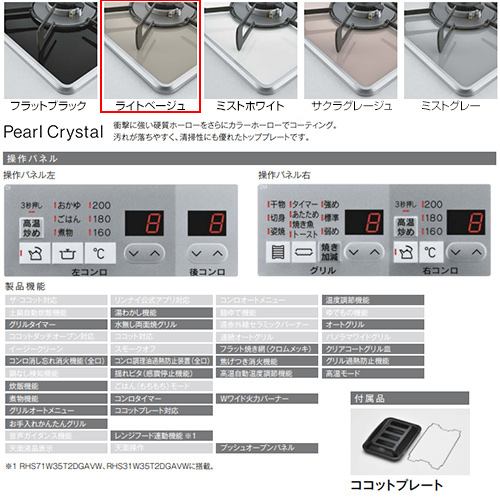 ビルトインガスコンロ マイトーン[60cm][乾電池[パールクリスタル:ライトベージュ][ごとく:ホーロー][ココットプレート付属]