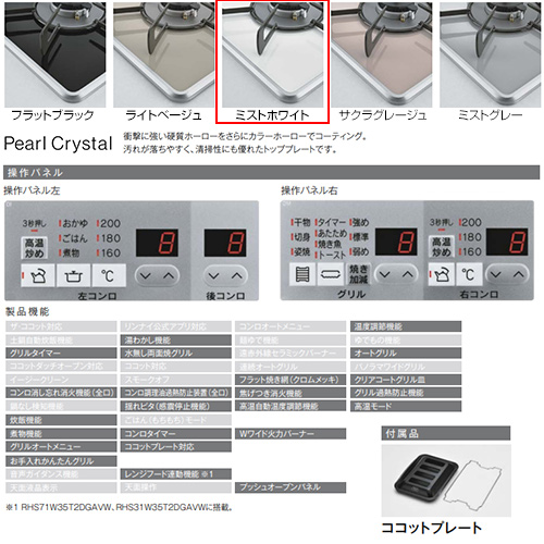 ビルトインガスコンロ マイトーン[60cm][乾電池][パールクリスタル:ミストホワイト][前面パネル:シルバー][ごとく:ホーロー][ココットプレート付属]