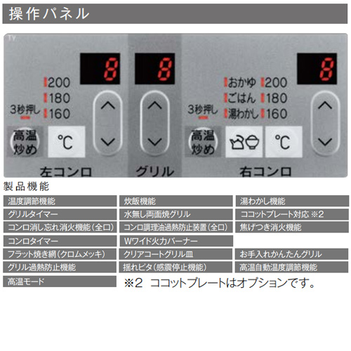 Wワイド火力や便利機能を搭載したビルトインコンロ。
