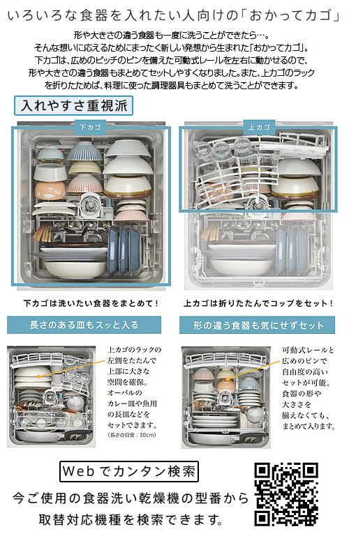 いろいろな形の食器が入れやすい、おかってカゴタイプ。