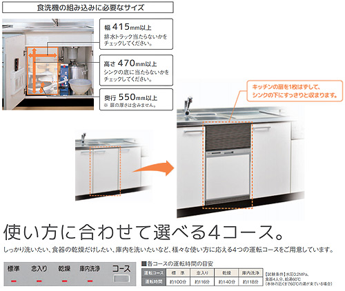 ・運転コース:標準、念入り、庫内洗浄、乾燥