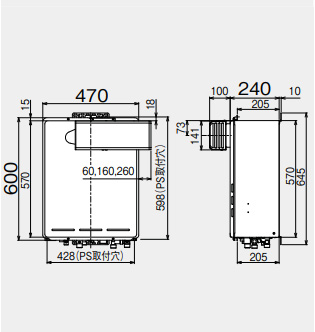 ・外形寸法:幅470×奥行240×高さ600mm