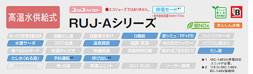 RUJ-A2400W(A) 13A+MC-146V(A)+UJ-230SLP|リンナイ|ガス給湯器[台所リモコン+ふろアダプターセット][浴室リモコン付属][屋外壁掛型][PS設置型][高温水供給式][24号][ユーロホワイト][都市ガス]|リフォームネクスト