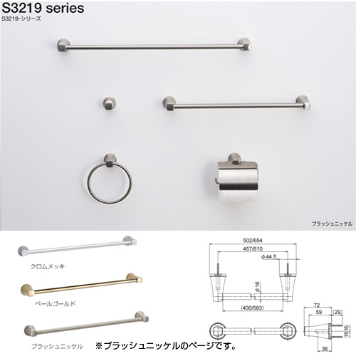 ●タオル掛[長さ457mm][S3219シリーズ][浴室可][ブラッシュニッケル][アクセサリー]▲