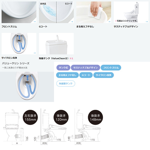 ※バリュークリン2は陶器製、バリュークリン3は樹脂製のトイレになります。