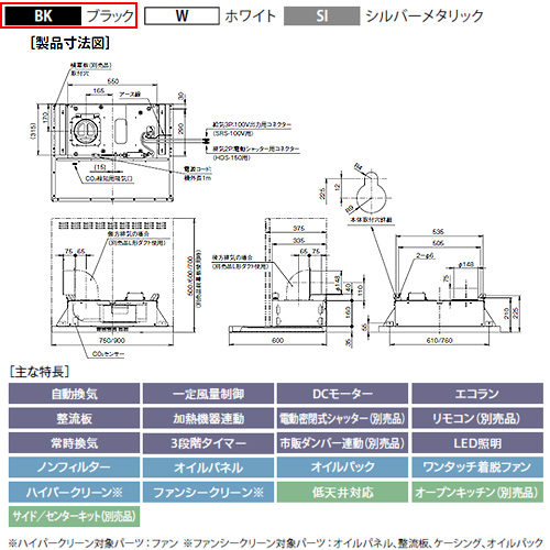 ●レンジフード プレミアムプラスシリーズ[シロッコファン][幅90cm][スリム型][自動換気][コンロ連動][ブラック]