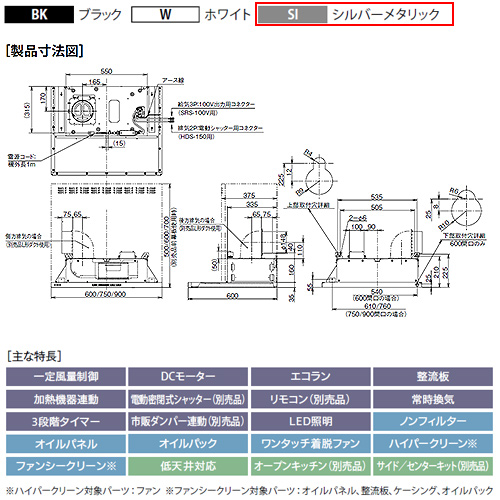 ●レンジフード プレミアムプラスシリーズ[シロッコファン][幅60cm][スリム型][常時換気][コンロ連動][シルバーメタリック]