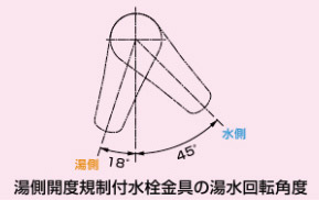 ※湯側開度規制とは、湯側のレバー開度を規制することであり、吐水温度を規制することではありません。