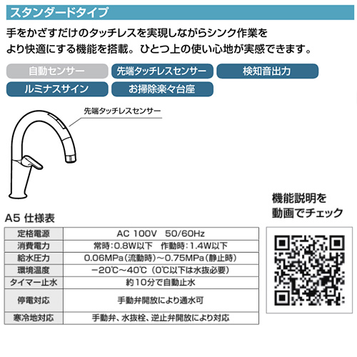 キッチン用蛇口 ナビッシュ[台][A5][タッチレス水栓][自動水栓][ホース引出式][AC100V][寒冷地]