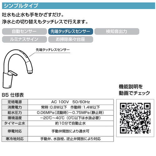 キッチン用蛇口 ナビッシュ[台][B5][タッチレス水栓][自動水栓][ホース引出式][AC100V][寒冷地]