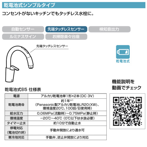 キッチン用蛇口 ナビッシュ[台][B5][タッチレス水栓][自動水栓][ホース引出式][乾電池][寒冷地]