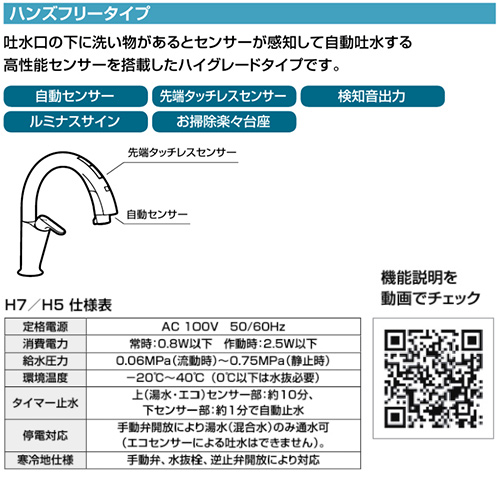 吐水口の下に洗い物があるとセンサーが感知して自動吐水する高性能センサーを搭載したハイグレードタイプです。