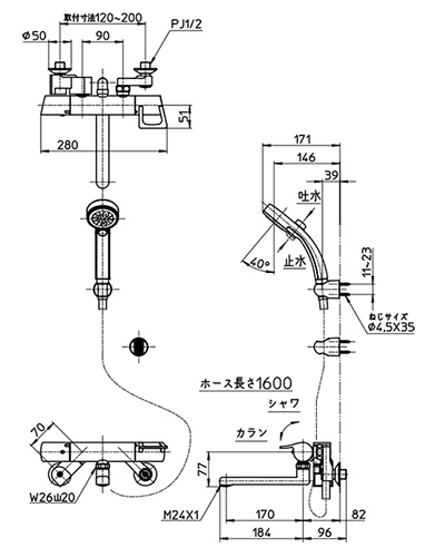 浴室用蛇口[壁][浴槽・洗い場兼用][サーモスタット付シャワーバス混合水栓][手元スイッチ][一般地]
