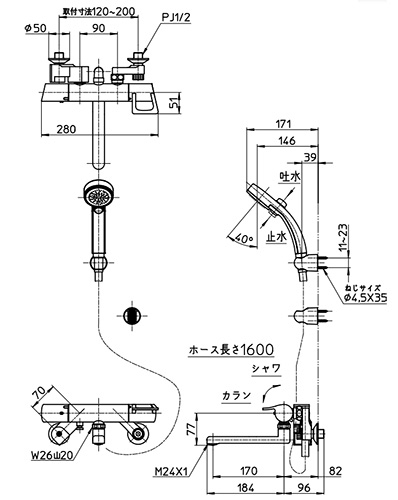 浴室用蛇口[壁][浴槽・洗い場兼用][サーモスタット付シャワーバス混合水栓][手元スイッチ][寒冷地]