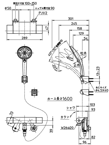 浴室用蛇口 オルディナプラス[壁][洗い場専用][サーモスタット付シャワーバス混合水栓][手元スイッチ][クロム][寒冷地]
