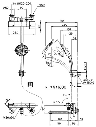 ・シャワーホース長さ:1.6m