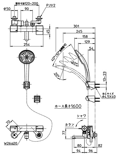 ・シャワーホース長さ:1.6m