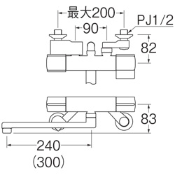 浴室用蛇口[壁][浴槽・洗い場兼用][サーモスタット付シャワーバス混合水栓][スパウト240mm][一般地]
