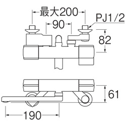浴室用蛇口[壁][浴槽・洗い場兼用][サーモスタット付シャワーバス混合水栓][スパウト190mm][寒冷地]