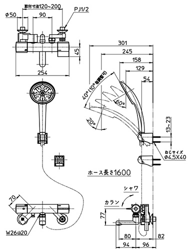 ・シャワーホース長さ:1.6m