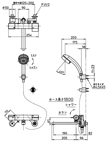 ・シャワーホース長さ:1.8m