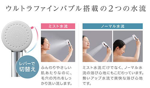 また、シャワーヘッドのレバーでミストにも切替できます。