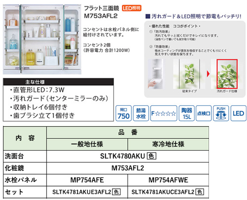 ※セット品番SLTK4781AKUE3AFL2*は化粧台本体と少し違います。