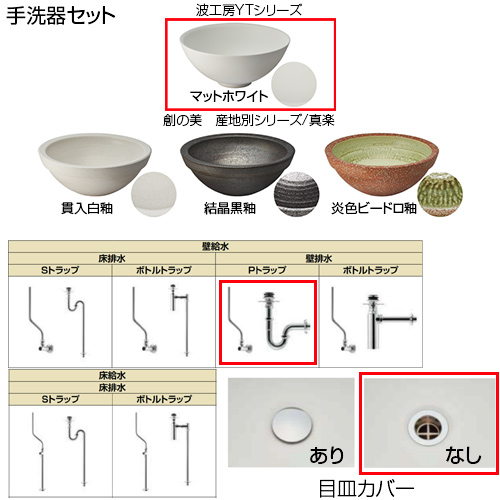 ・手洗器:波工房YTシリーズ(マットホワイト)/創の美 産地別シリーズ(貫入白釉/結晶黒釉/炎色ビードロ釉)