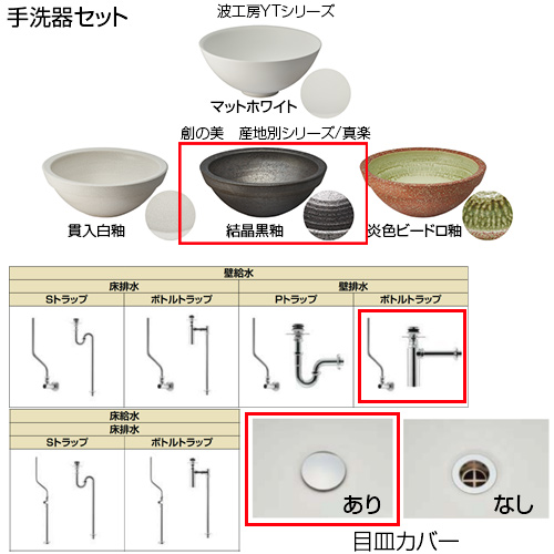 ・手洗器:波工房YTシリーズ(マットホワイト)/創の美 産地別シリーズ(貫入白釉/結晶黒釉/炎色ビードロ釉)