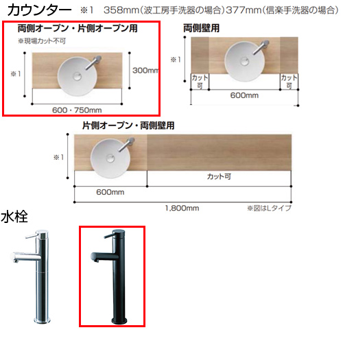 カウンター(ボウル位置:ボウル中央/間口750mm)