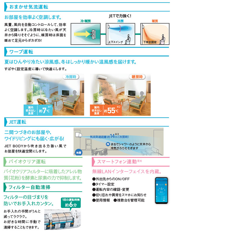 フィルター自動清掃機能&加湿器連動運転付きで毎日を快適に。