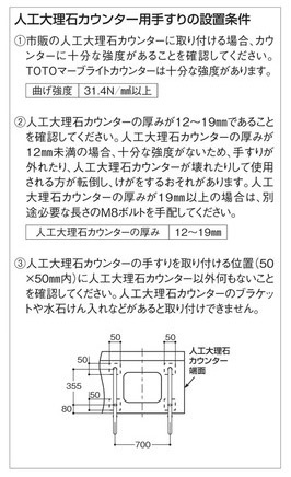 こちらの商品は人工大理石カウンター専用手すりです。