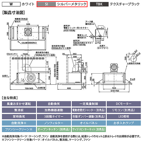 ●レンジフード プレミアムプラスシリーズ[シロッコファン][幅75cm][スリム型][自動洗浄][常時換気][コンロ連動][シルバーメタリック]