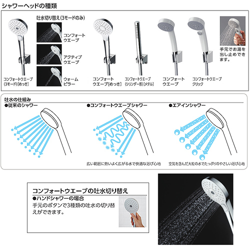 ・シャワー種類:コンフォートウエーブ3モードめっき