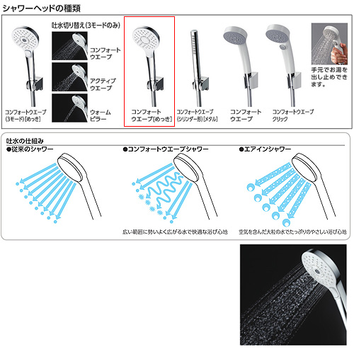 ・シャワーの種類:コンフォートウエーブ(めっき)