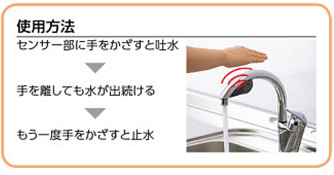 吐水口まわりの空間が広く使えるグースネックタイプの自動水栓です。
