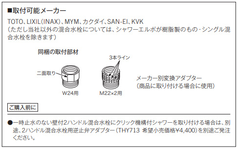 ただし、当社以外のの混合水栓については、シャワーエルボが樹脂製のもの・シングル混合水栓を除きます。