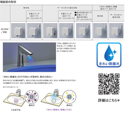 洗面用蛇口 アクアオート[台][Aタイプ][自動水栓][混合水栓][きれい除菌水搭載][AC100V][ワンプッシュ式][首長106mm][一般地]