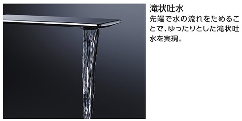 先端で水の流れをためることで。たっぷりの滝状吐水を実現。