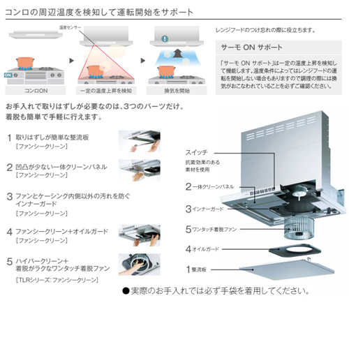 必要な機能を凝縮。コンロの周辺温度を検知して運転開始をサポート。