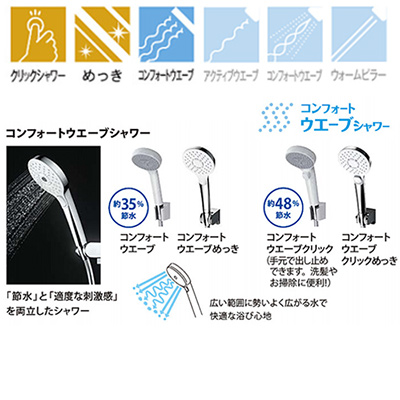 ・シャワーヘッドの種類:コンフォートウエーブクリック(めっき)